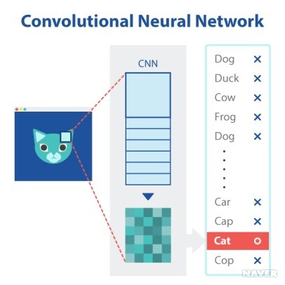 세계적으로 이미지 인식 기술의 중요한 축을 형성하는 이미지 넷 대용량 영상 인식 대회(ILSVRC; Large Scale Visual Recognition Challenge)라는 세계 대회가 있습니다. ILSVRC에서 특정 이미지 데이터세트에 포함된 이미지가 무엇인지를 분류하는 과제에서 우승하는 시스템의 정확도는 2010년도까지는 70% 정도였습니다. 정밀도를 향상하기 위한 노력이 지속적으로 이루어졌지만 정확도는 크게 향상되지 않고 있었습니다. 그런 정체의 시대를 깬 것이 머신러닝의 이미지 인식 시스템이었습니다. 2012년 ILSVRC에서 알렉스넷(AlexNet)이라는 시스템이 전년도 우승 시스템의 이해도를 10% 포인트나 개선하면서 우승을 차지했습니다. 알렉스넷은 합성곱 신경망( CNN; Convolutional Neural Network)이라는 종류의 신경망을 이용한 시스템입니다. 합성곱 신경망은 생물의 시각 신경계에서 힌트를 얻은 신경망으로 퍼셉트론과 같은 전결합 계층형 신경망과는 다른 구조로 되어 있습니다. 알렉스넷은 하나 또는 여러 개의 콘볼루션계층(convolutional layer)과 통합 계층(pooling layer), 완전하게 연결된 계층(fully connected layer)들로 구성된 신경망입니다.